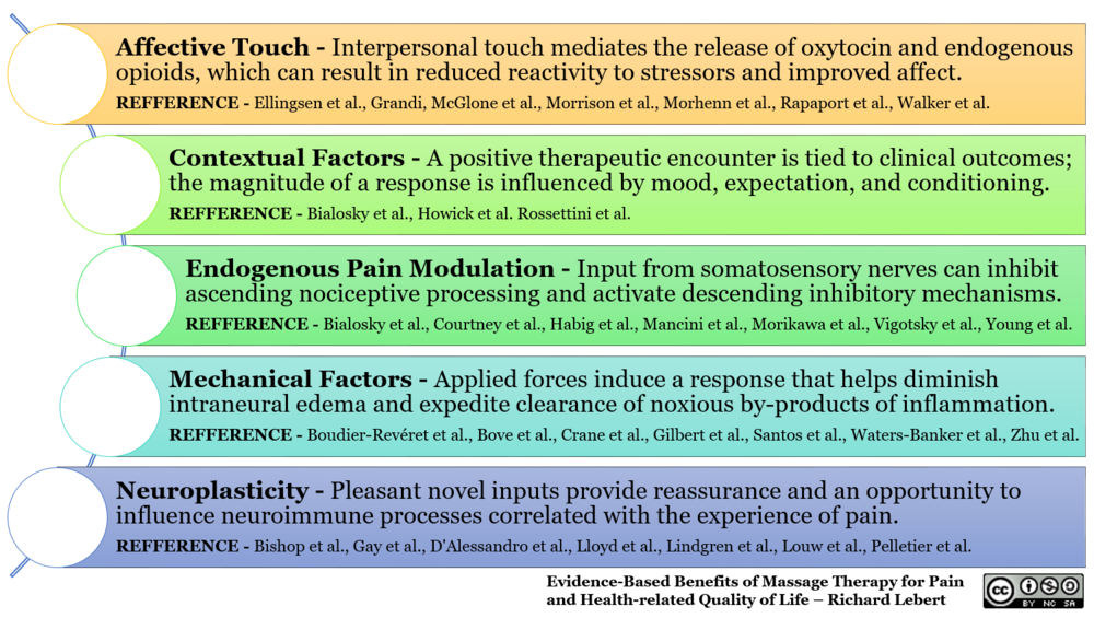 Moreover, when we receive therapeutic touch, the results are multifaceted. Beyond the oxytocin and other endogenous opioids we benefit from with touch, mechanical manipulation of the tissue decreases tension in the body, diminishes swelling and inflammation, increases immunity, and positively affects the way our brains process pain. So, if safe physical connection with others, such as professional massage and bodywork or other manual therapies, is available to you, its many powerful physiological and psychological benefits are within easy reach.